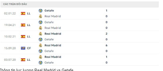 Phong độ và lịch sử đối đầu Real Madrid vs Getafe